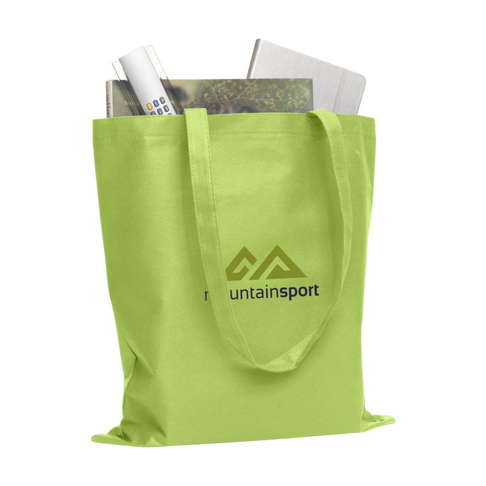Einkaufstasche mit langen Henkeln aus "non woven" Material (80 g/m²): eine superleichte, starke Kunstfaser. Fassungsvermögen ca. 8 Liter.
