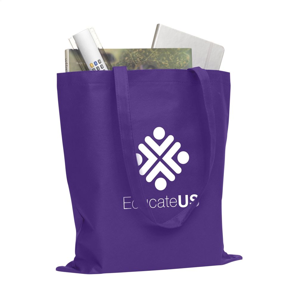 Einkaufstasche mit langen Henkeln aus "non woven" Material (80 g/m²): eine superleichte, starke Kunstfaser. Fassungsvermögen ca. 8 Liter.
