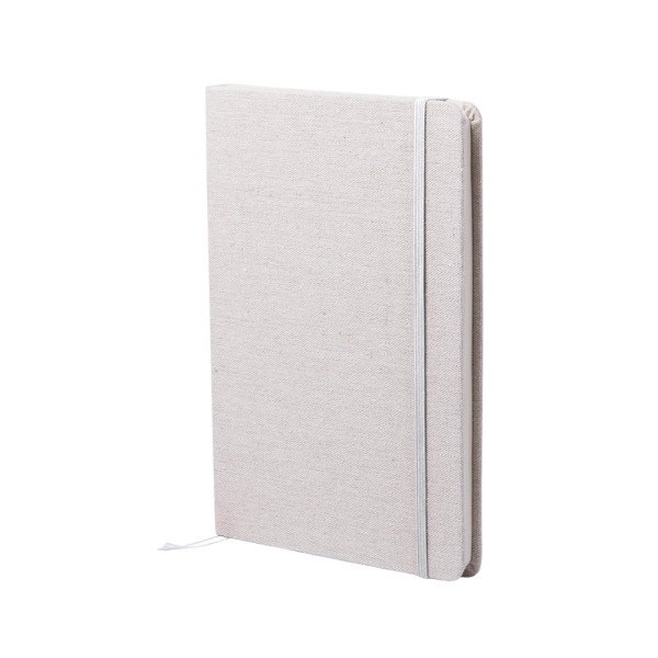 Notizbuch aus natürlichen Materialien. Cover aus weicher, natürlicher Baumwolle in Naturfarbe. Mit Gummibandverschluss und Lesezeichenband in passenden, auffälligen Farben. Enthält 80 Blätter.
