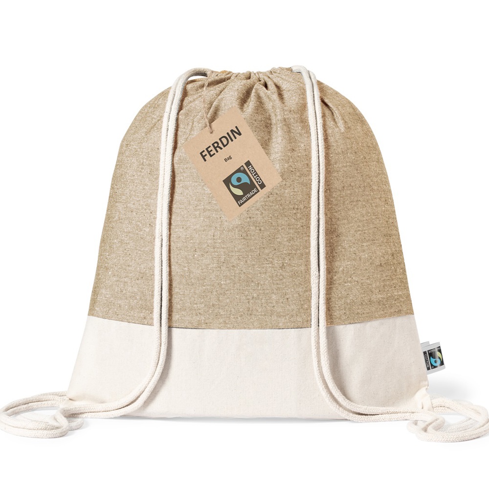Linie Natur Kordelzug Tasche, hergestellt in Baumwolle Material 140g/m2. Mit Fairtrade-Zertifizierung, eine Alternative zum konventionellen Handelssystem, die die Entwicklung der Völker und den Kampf gegen die Armut verfolgt. Genähtes Finish und passende Baumwollschnüre mit naturfarbenem Boden und Vorderseite in schwarz und naturfarben erhältlich. Fairtrade-Etikett und Anhänger aus recyceltem Karton im Lieferumfang enthalten.