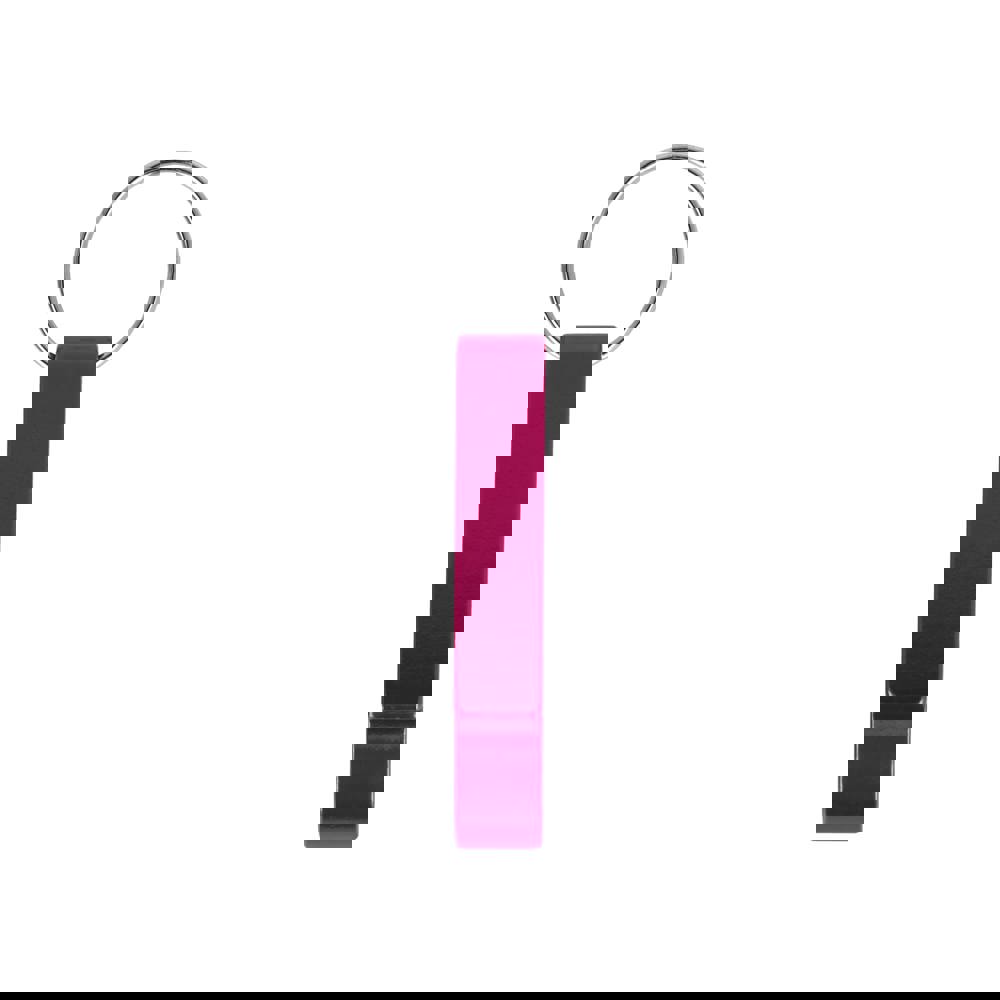 Aluminium-Schlüsselanhänger mit kombiniertem Flaschen- und Dosenöffner. Leicht, langlebig und ideal für den täglichen Gebrauch.