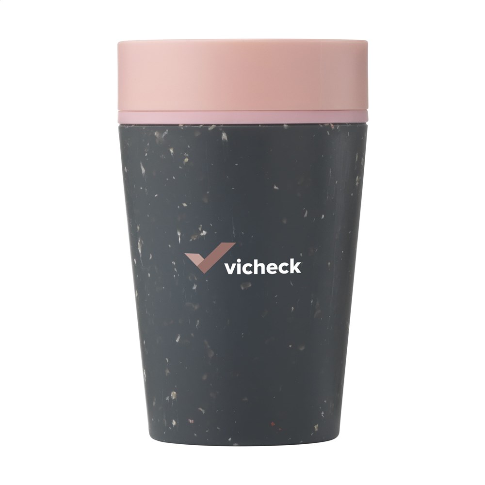 Doppelwandiger, wiederverwendbarer Kaffeebecher-to-go mit Deckel von Circular&Co. Die äußere Isolierschicht dieses Bechers wird aus gebrauchten, recycelten Einweg-Kaffeebechern aus Papier hergestellt. Mit Innenwand und Deckel aus PP. 100% auslaufsicher. Die isolierende Wirkung hält Ihr Heißgetränk länger warm und Ihr Kaltgetränk länger kühl. Der Deckel ist mit der patentierten 360-Grad-Technologie ausgestattet, die es Ihnen ermöglicht, aus jedem Winkel zu nippen. Der Kaffeebecher lässt sich mit einer Hand und einem Klick öffnen und schließen. Ideal für unterwegs. Spülmaschinengeeignet. Um den Aufdruck zu erhalten, wird Waschen von Hand empfohlen. Fassungsvermögen: 227 ml. EXTRA INFO: Bei einer Mindestbestellmenge von 5.000 Stück ist der Deckel dieses Produkts in jeder PMS-Farbe erhältlich. Auf diese Weise schaffen Sie eine perfekte Übereinstimmung zwischen Produkt und Aufdruck. Verpackt pro Stück.