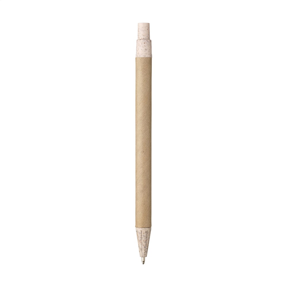 Dieser Kugelschreiber ist eine Alternative zum regulären Kugelschreiber – er ist aus Weizenabfällen und Recyclingpapier hergestellt. Es gibt viel Weizen auf der Welt. Das bedeutet, dass es auch viele weizenbezogene Abfallstoffe wie Blätter, Stroh und dergleichen gibt. Diese Abfallstoffe erhalten mit diesem Kugelschreiber ein zweites Leben.