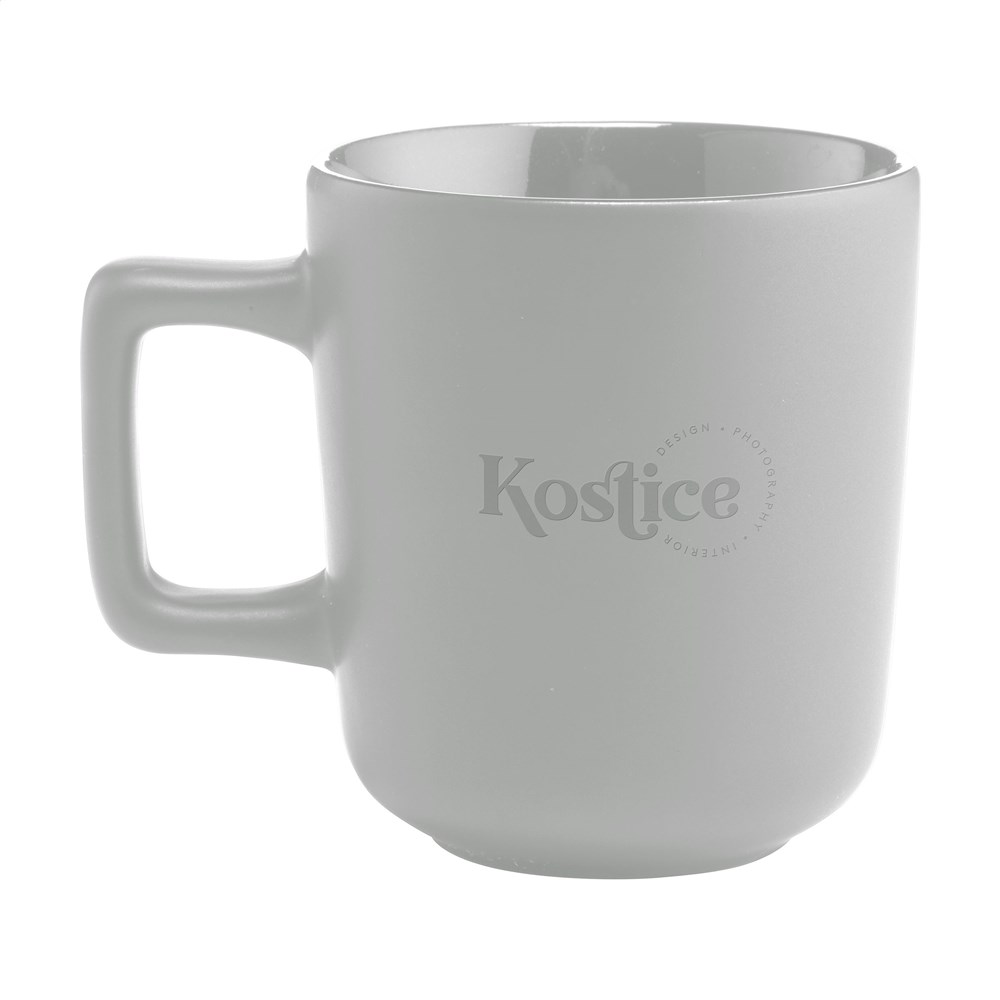 Becher aus hochwertiger Keramik mit einem auffälligen Henkel. Außen matt und innen hochglänzend lackiert. Spülmaschinenfest. Der Druck ist spülmaschinengeprüft und zertifiziert: EN 12875-2. Fassungsvermögen 280 ml. NOTIZ: Der weiße Becher kann nicht mit einer Lasergravur versehen werden, da diese nicht ausreichend sichtbar ist.