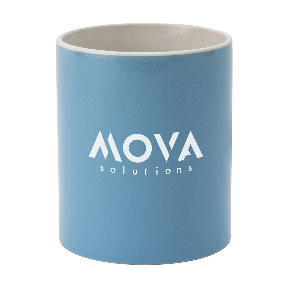 Becher aus hochwertiger Keramik. Komplett in weiß oder mit farbiger Außenseite. Spülmaschinengeeignet. Der Aufdruck ist spülmaschinengeprüft und nach EN 12875-2 zertifiziert. Fassungsvermögen 350 ml.