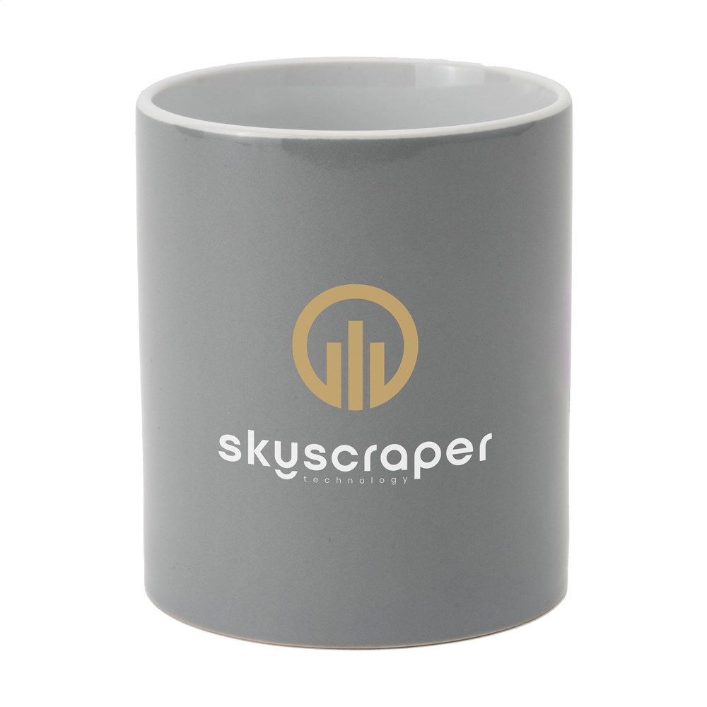 Becher aus hochwertiger Keramik. Komplett in weiß oder mit farbiger Außenseite. Spülmaschinengeeignet. Der Aufdruck ist spülmaschinengeprüft und nach EN 12875-2 zertifiziert. Fassungsvermögen 350 ml.