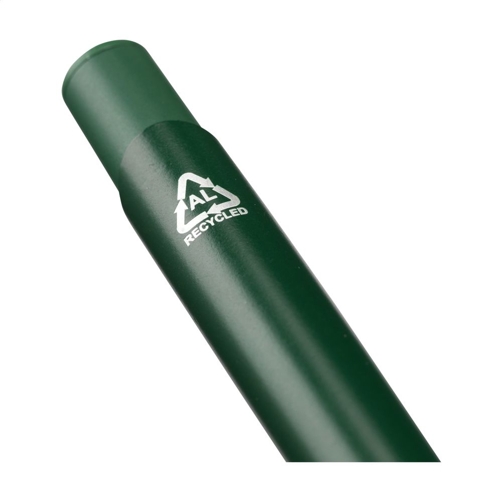 Blau schreibender Kugelschreiber mit einem Gehäuse aus 100% recyceltem Aluminium. Mit Metallclip,... mehr