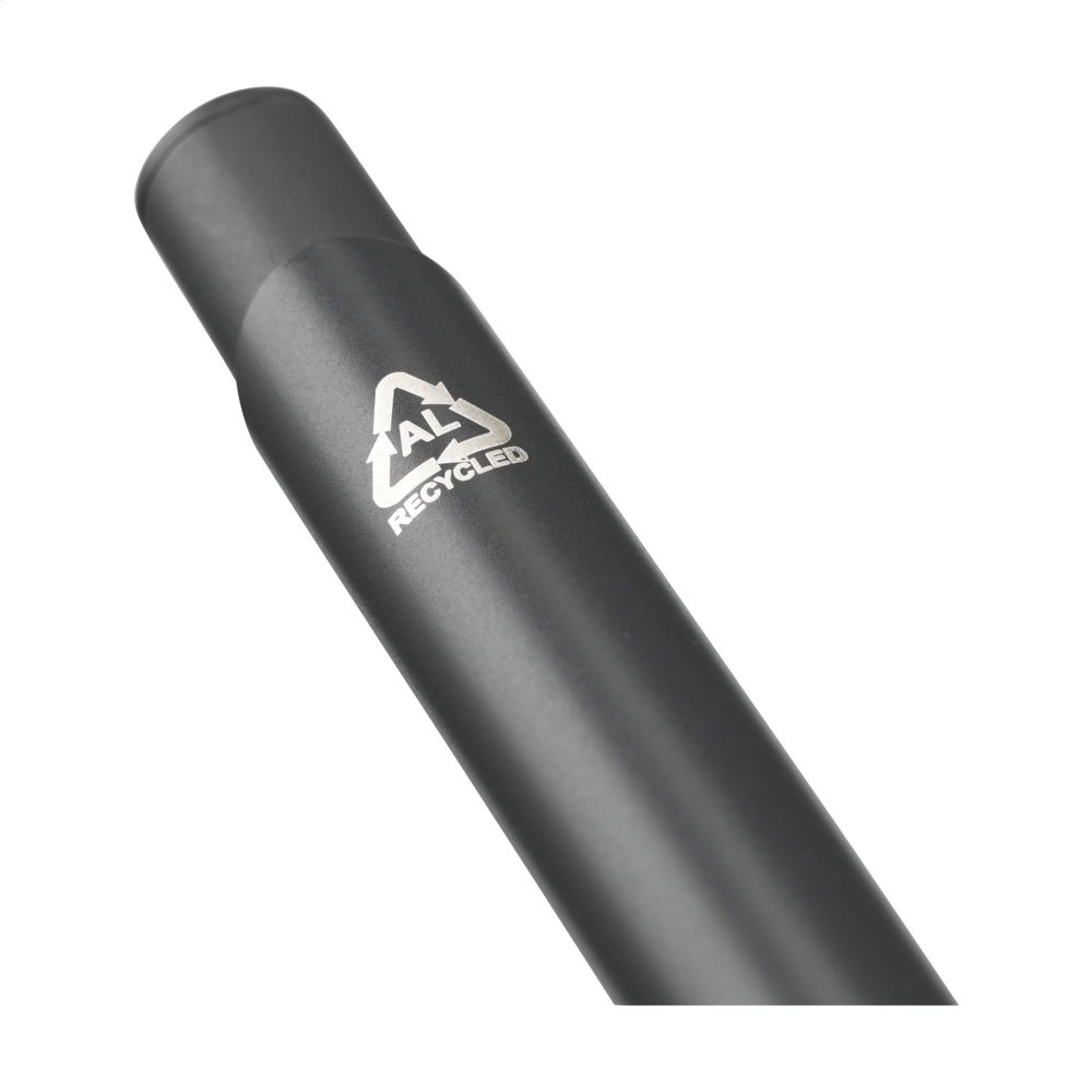 Blau schreibender Kugelschreiber mit einem Gehäuse aus 100% recyceltem Aluminium. Mit Metallclip,... mehr