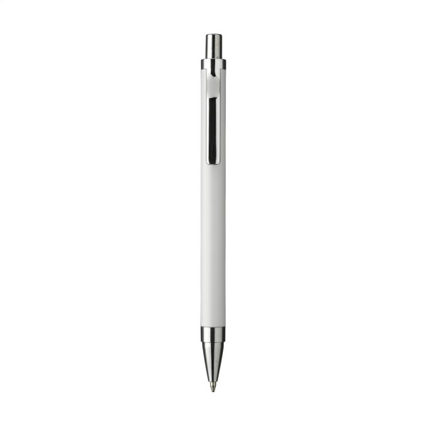 Modischer, blauschreibender Kugelschreiber mit einem Gehäuse aus 100% recyceltem Aluminium mit mattem Finish. Mit formschönem Metallclip und Gehäuse aus einem Stück. RCS-zertifiziert. Durch die Verwendung von recyceltem Aluminium werden bei der Herstellung dieses Produkts weniger neue Rohstoffe verwendet. Das bedeutet weniger Energieverbrauch und weniger Wasserverbrauch.