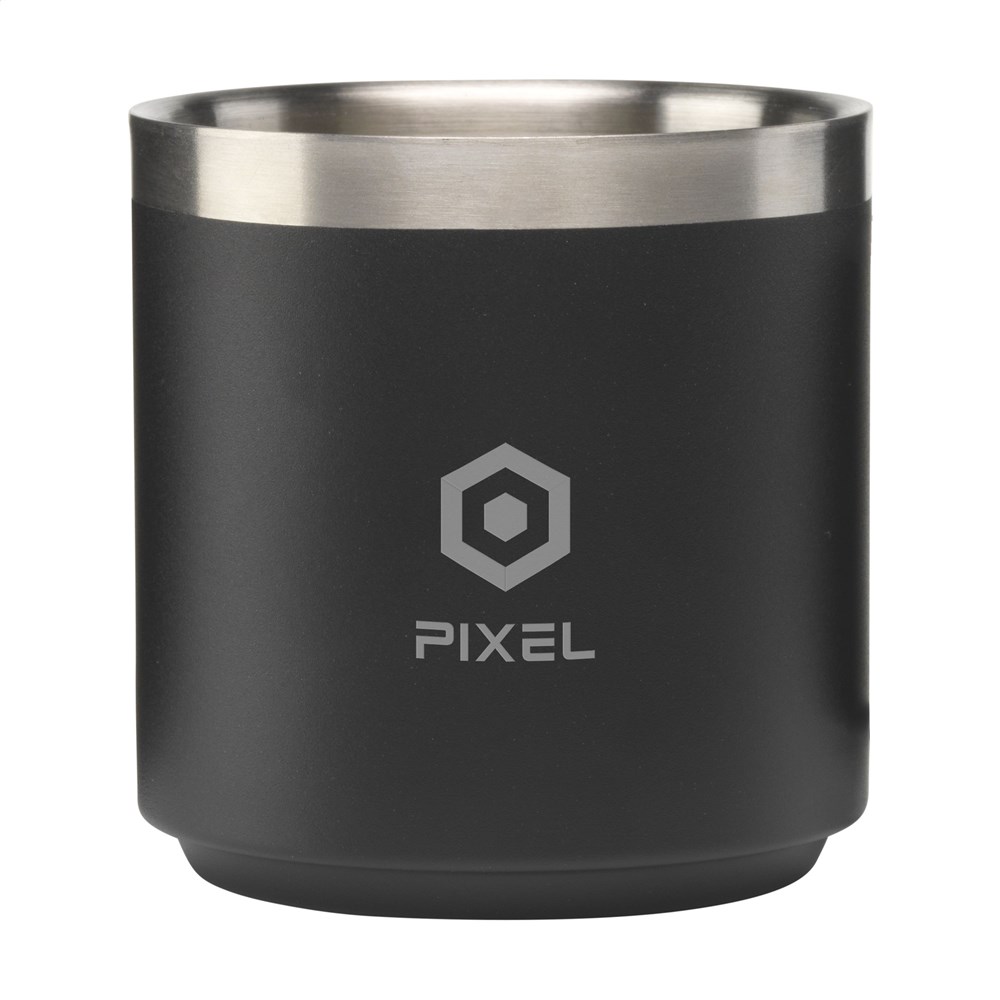 Doppelwandiger, stapelbarer Becher. Die Innen- und Außenwände sind aus recyceltem Edelstahl gefertigt. Dadurch bleiben heiße Getränke länger auf Temperatur. Mit einer attraktiven Pulverbeschichtung versehen. RCS-zertifiziert. Gesamtes recyceltes Material: 87%. Fassungsvermögen 500 ml. Edelstahl kann viele Male recycelt werden – die Qualität des Materials bleibt dabei weitgehend erhalten. Durch die Verwendung von recyceltem Edelstahl kommt eine geringere Menge an neuen Rohstoffen zum Einsatz. Das bedeutet weniger Energieverbrauch und weniger Wasserverbrauch. Verpackt pro Stück.