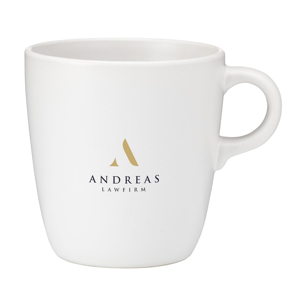 Becher im schlichten, trendigen Design. Hergestellt aus hochwertiger Keramik und mit einer matten Beschichtung auf der Außen- und Innenseite. Fassungsvermögen 375 ml. NOTIZ: Der weiße Becher kann nicht mit einer Lasergravur versehen werden, da diese nicht ausreichend sichtbar ist.