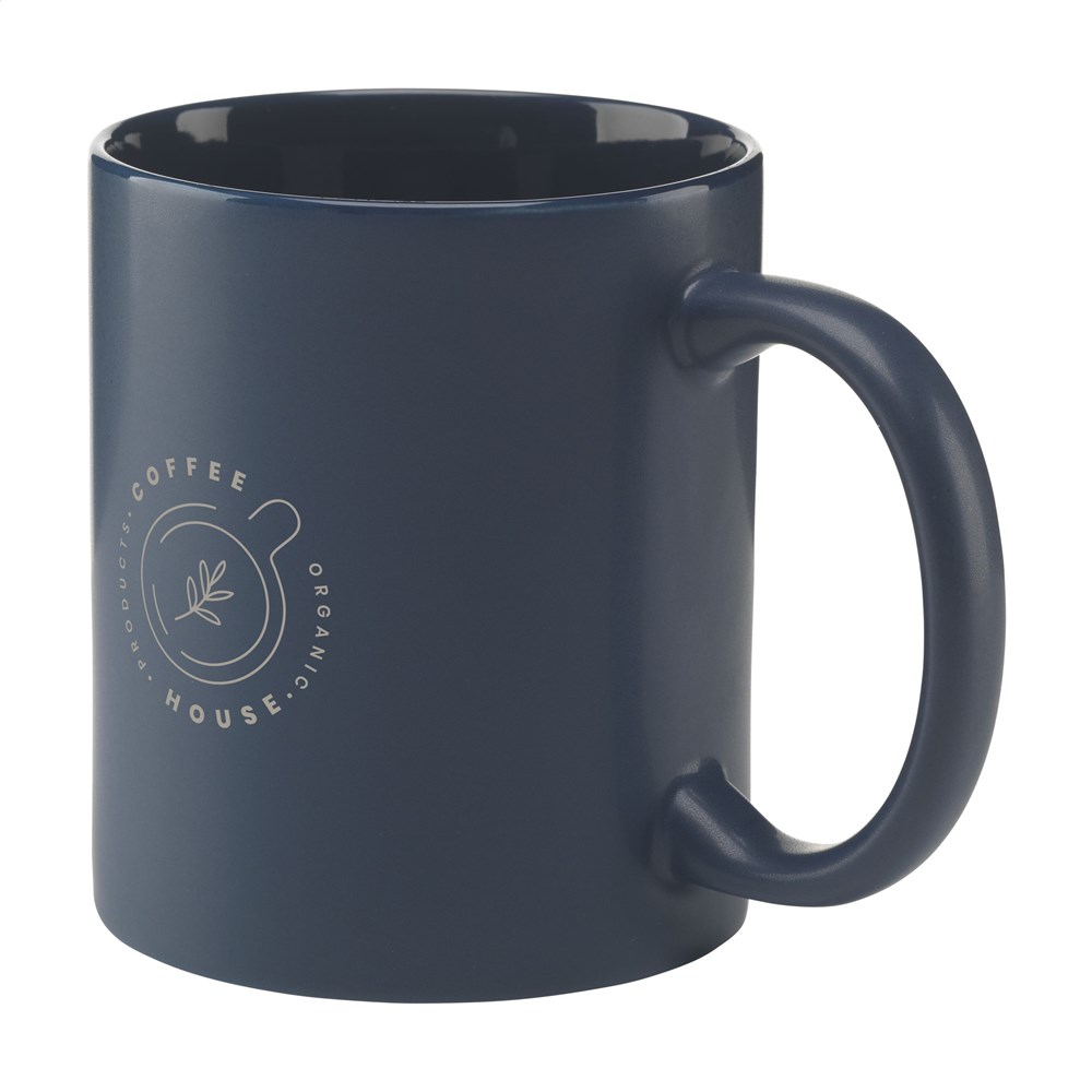 Becher aus hochwertiger Keramik mit mattierter Außenseite und glänzender Innenseite. Spülmaschinengeeignet. Der Aufdruck ist spülmaschinengeprüft und nach EN 12875-2 zertifiziert. Fassungsvermögen 350 ml.