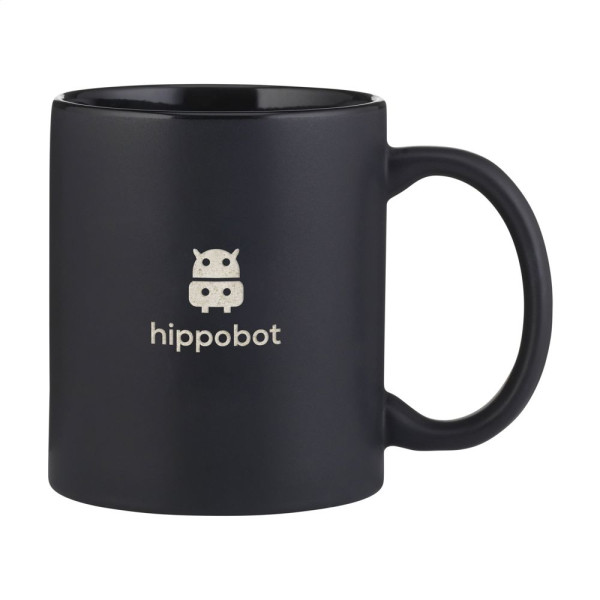 Becher aus hochwertiger Keramik mit mattierter Außenseite und glänzender Innenseite. Spülmaschinengeeignet. Der Aufdruck ist spülmaschinengeprüft und nach EN 12875-2 zertifiziert. Fassungsvermögen 350 ml.
