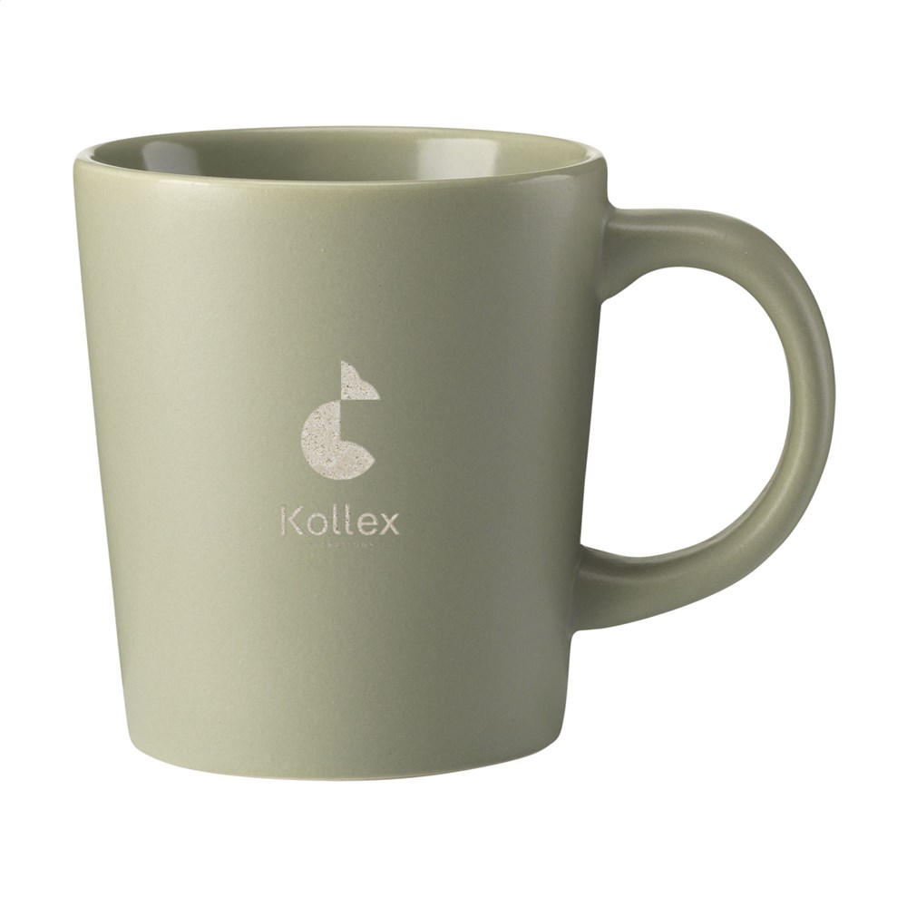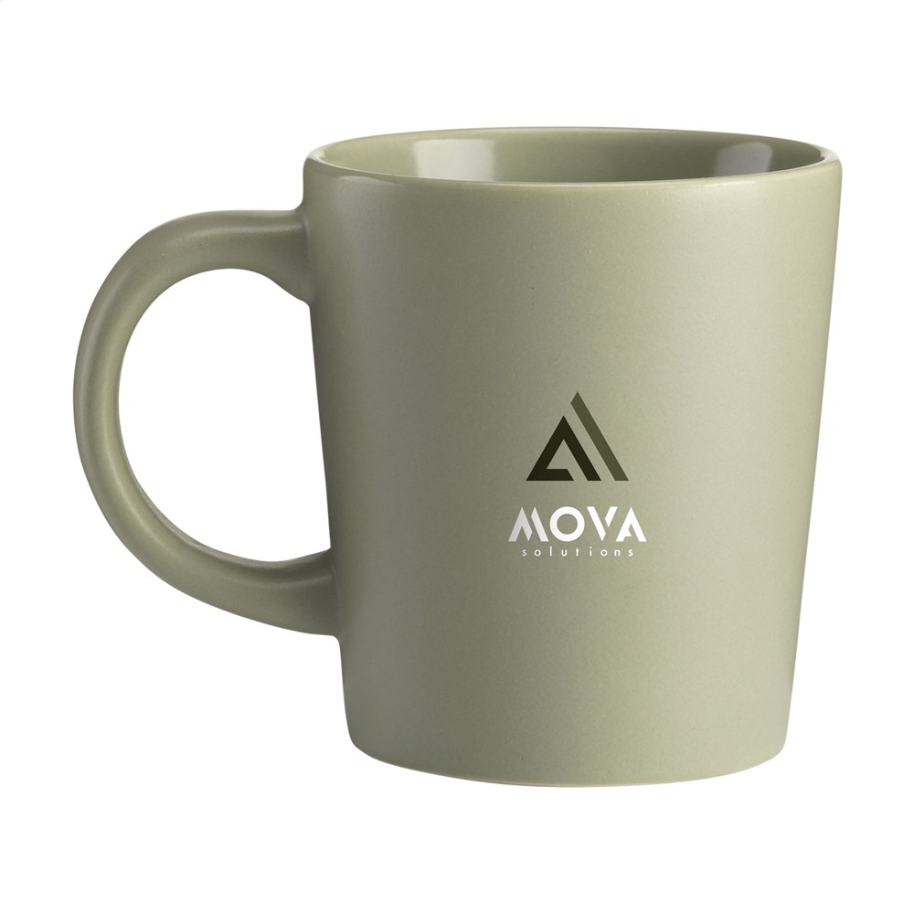 Auffälliger Becher in ansprechendem Design. Aus hochwertiger Keramik gefertigt und mit einer matten Deckschicht versehen. Fassungsvermögen 250 ml. NOTIZ: Der weiße Becher kann nicht mit einer Lasergravur versehen werden, da diese nicht ausreichend sichtbar ist. Der Druck ist spülmaschinengeprüft und zertifiziert: EN 12875-2.