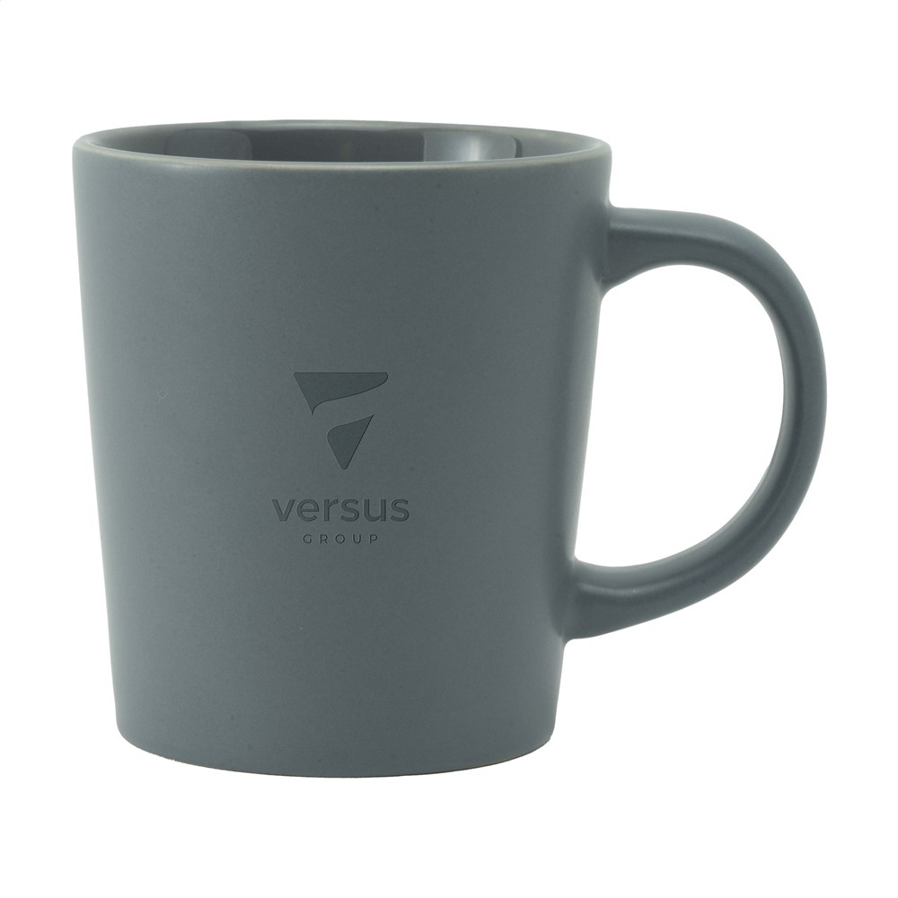 Auffälliger Becher in ansprechendem Design. Aus hochwertiger Keramik gefertigt und mit einer matten Deckschicht versehen. Fassungsvermögen 250 ml. NOTIZ: Der weiße Becher kann nicht mit einer Lasergravur versehen werden, da diese nicht ausreichend sichtbar ist. Der Druck ist spülmaschinengeprüft und zertifiziert: EN 12875-2.
