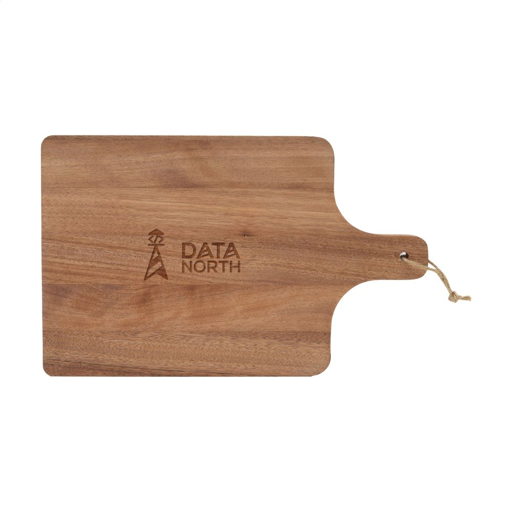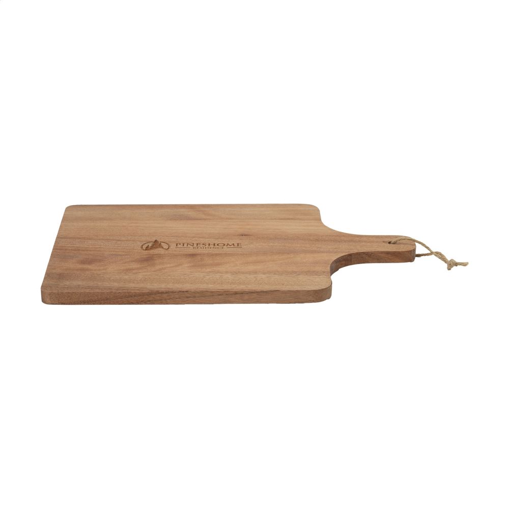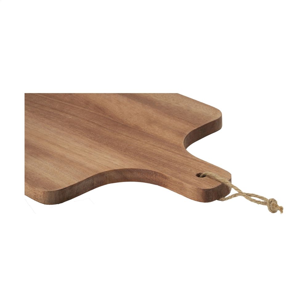 underschönes, großzügiges Wooosh-Servierbrett aus FSC 100% zertifiziertem Akazienholz, einer robusten Holzart mit warmer Ausstrahlung. Die künstlerischen Eigenschaften von Akazienholz – wie die feine Maserung, die Flammenzeichnung und die unterschiedlichen Farbnuancen – verleihen diesem Servierbrett seinen einzigartigen Charakter. Dieses Brett wurde sorgfältig mit einem vegetarischen Sojabohnenöl behandelt. Dank der bakterientötenden Eigenschaften der Akazie ist dieses Brett von Natur aus hygienisch. Das Servierbrett ist nicht nur funktional, sondern auch ein dekoratives Prunkstück. Der praktische Aufhänger verleiht dem Brett zusätzlich Charakter. Das große Brett eignet sich perfekt, um Häppchen oder ein köstliches Mittagessen stilvoll zu präsentieren. Lassen Sie dieses wunderschöne Brett zu einem unverzichtbaren Bestandteil Ihrer kulinarischen Erlebnisse werden. Pro Stück in einer luxuriösen Wooosh-Geschenkbox.