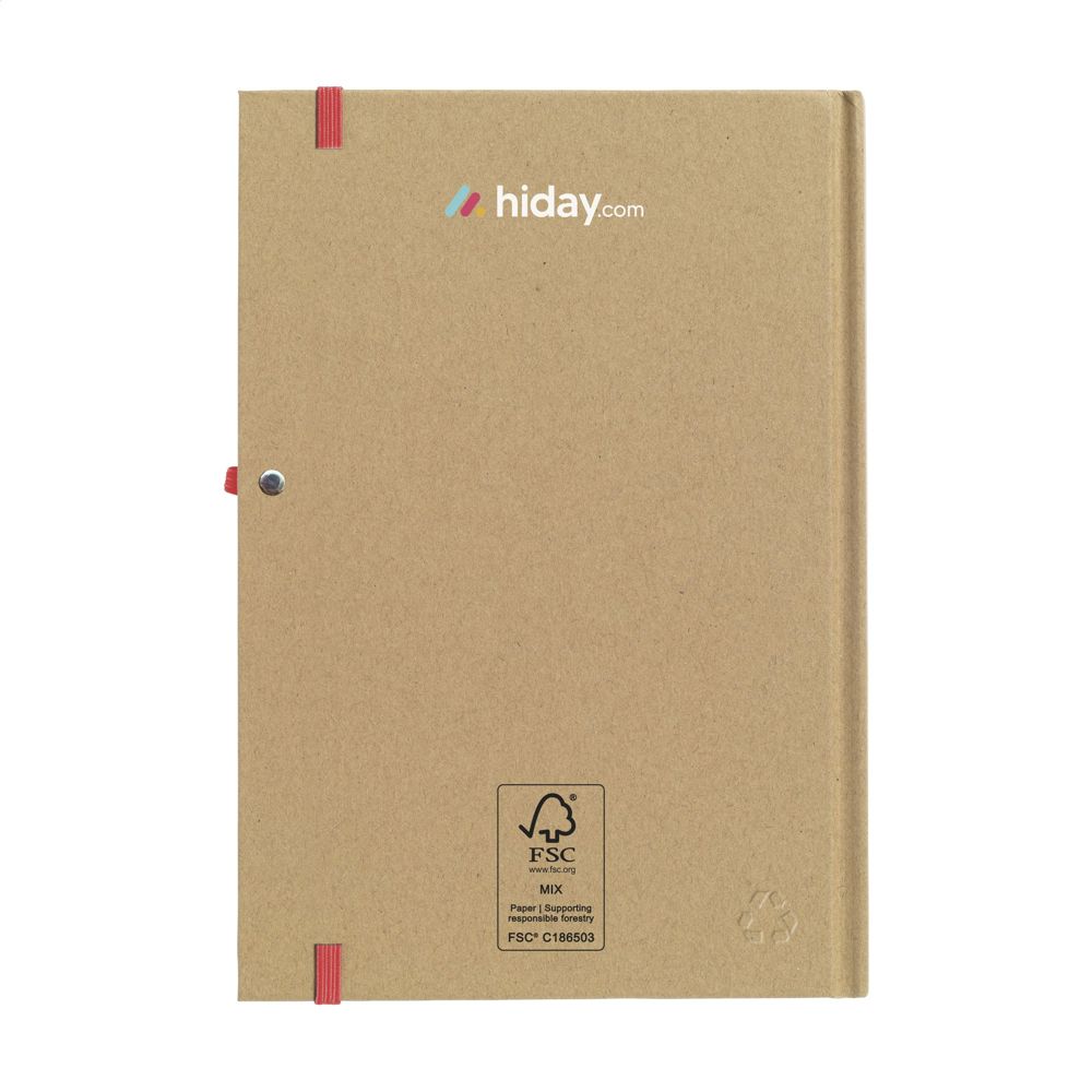 Notizbuch im A5-Format aus recyceltem Material. Mit ca. 80 Blatt/160 Seiten cremefarbenem, liniertem FSC Mix zertifiziertes Papier (70 g/m²), praktischem Stiftfach und elastischem Verschluss.