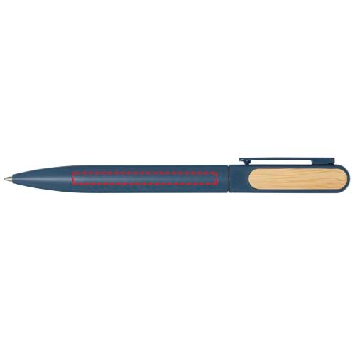 Der Blanca Kugelschreiber hat einen oberen Schaft aus recyceltem Kunststoff mit einer farbigen Sprühbeschichtung und Bambusaccessoires auf beiden Seiten. Der untere Teil des Schafts besteht aus recyceltem Aluminium mit einer farbigen Pulverbeschichtung. Tintenfarbe: Blau. Schreiblänge: 400 Meter. Strichstärke: 1,0 mm.