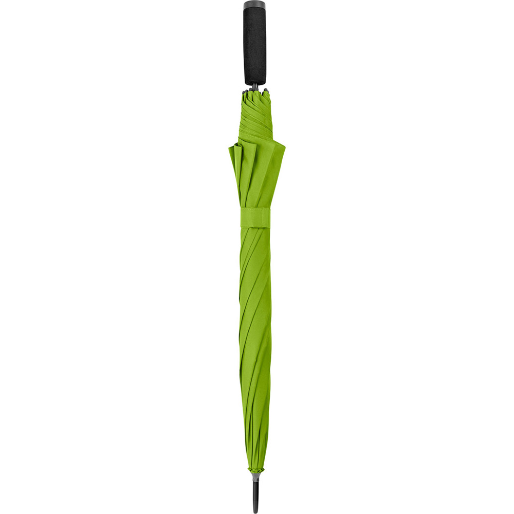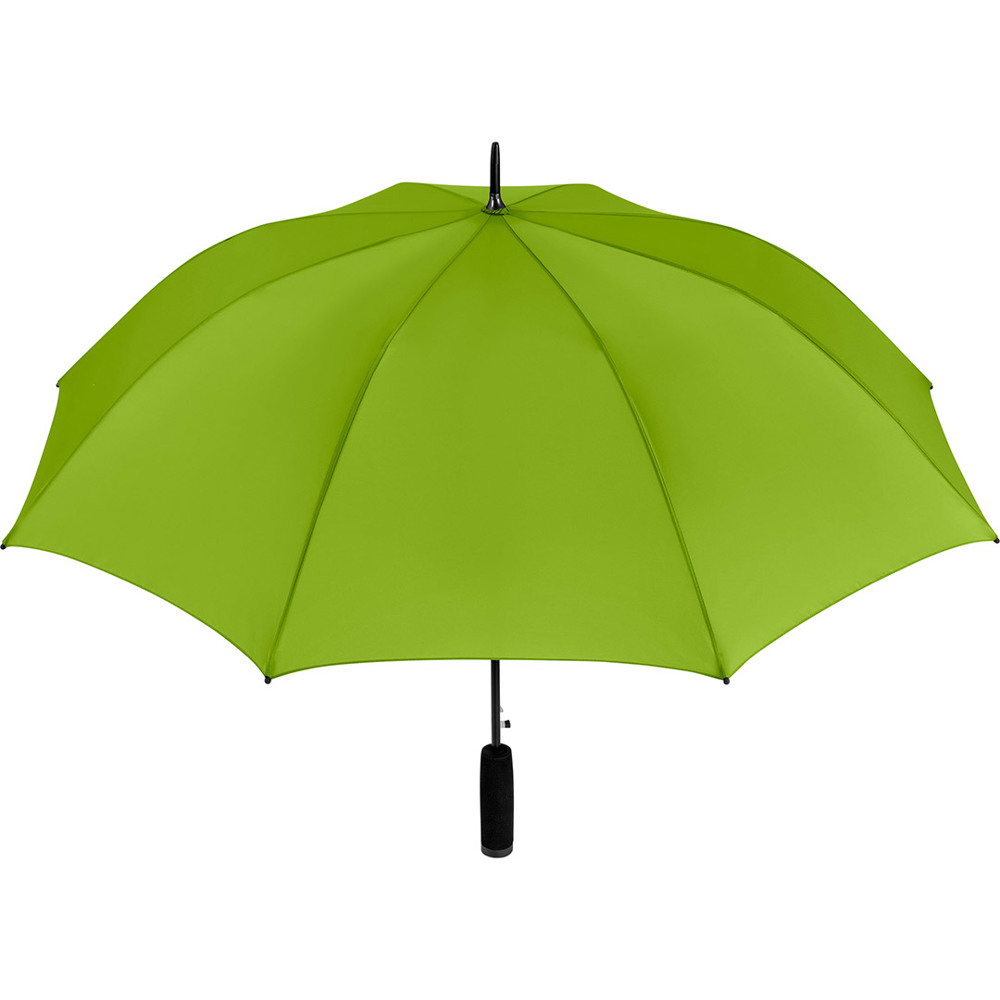 Automatik-Stockschirm mit hervorragendem Preis-Leistungs-Verhältnis und Windproof-System Komfortable Automatik-Funktion zum schnellen Öffnen, hochwertiges Windproof-System für höhere Gestell-Flexibilität und bessere Windsicherheit, flexible Fiberglasschienen, höherer Korrosionsschutz durch schwarze Galvanisierung des Stahlstocks, handsympathischer Soft-Griff mit Werbeanbringungsmöglichkeit