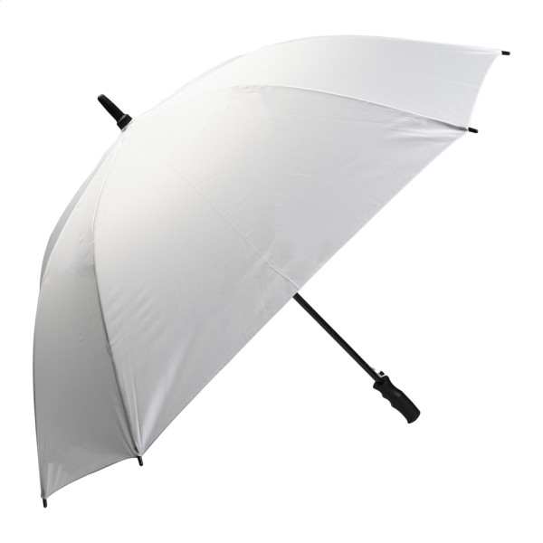 Automatischer, großer, quadratischer windproof Regenschirm. Gestell und Schaft aus Fiberglas, mit gummierten ABS-Griff. Material: 190T RPET-Pongee. Mit Label RPET.