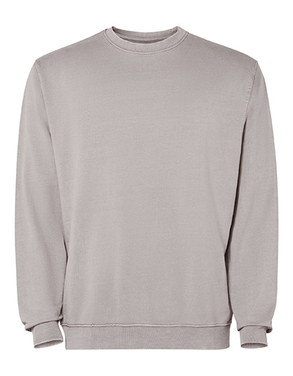 Unisex Sweatshirt mit Rundhalsausschnitt | Frottee-Baumwolle, sauer gewaschen | 2x1 gerippter Kragen, Manschetten und Saum in Ton | Verstärkte Nähte an Bündchen, Saum, Bund und Armausschnitten | Ton-in-Ton-Deckstich am Halsausschnitt