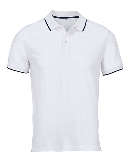 Piqué | Gekämmte, ringgesponnene Baumwolle | Gerippter Kragen und Manschetten mit kontrastierendem Streifen | Nacken- und Schulterband in der gleichen Farbe wie der Streifen | 2-Ton-in-Ton-Knopfleiste | Bequeme Passform | Geschnitten und genäht | Verstärkte und abgesetzte Seitenschlitze | Ersatzknopf an der inneren Seitennaht | Aufkleber abreißen