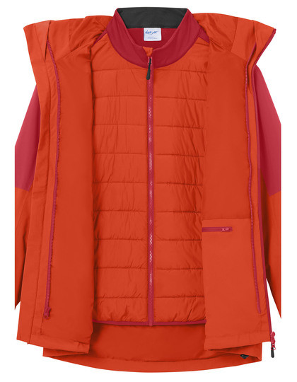 Aussenjacke mit Membran ist wind- und wasserdicht (10.000 mm Wassersäule), atmungsaktiv und wasserdampfdurchlässig (5.000 g/m²/24h) | Nähte sind versiegelt und alle Reißverschlüsse wasserdicht Reißverschluss im Innenfutter zur Rückenveredelung | 2-farbige Kontrastverarbeitung | Angeschnittene und regulierbare Kapuze | Unterlegter 2-Wege-Reißverschluss mit Kinnschutz | 2 seitliche Taschen, eine Brusttasche und eine Innentasche | Alle Taschen mit Reißverschluss | Einzippbare, wärmende Hybridjacke aus pflegeleichtem Stretch-Fleece und einem wattierten Vorderteileinsatz | Vorderteileinsatz mit Sugenro-Füllung | 2-farbige Kontrastverarbeitung passend zur Aussenjacke | 2 seitliche Taschen mit Reißverschluss, 2 Innentaschen | Stehkragen
