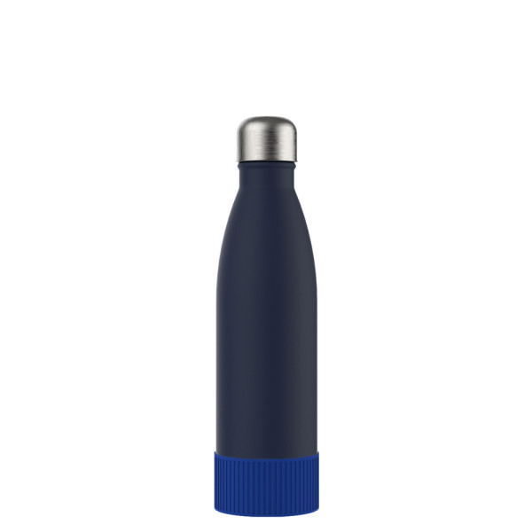 Für Heiß- oder Kaltgetränke, unsere doppelwandige Edelstahlflasche überzeugt durch trendiges und funktionales Design. Durch die Doppelwandigkeit mit Vakuum bleiben ihre Getränke lange kalt bzw. heiß. Die Trinkflasche kann mit navy-blauem, edlen mattschwarzem, weißem Powder Coating oder natürlich silberglänzend bestellt werden. 500 ml Fassungsvermögen stehen zur Verfügung. Setzen Sie ihr Logo stilvoll in Szene auf der Trend Trinkflasche schlechthin.