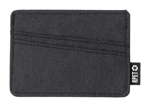 Kreditkartenbörse aus RPET Polyester mit 3 Kartenfächern und RPET-Label.