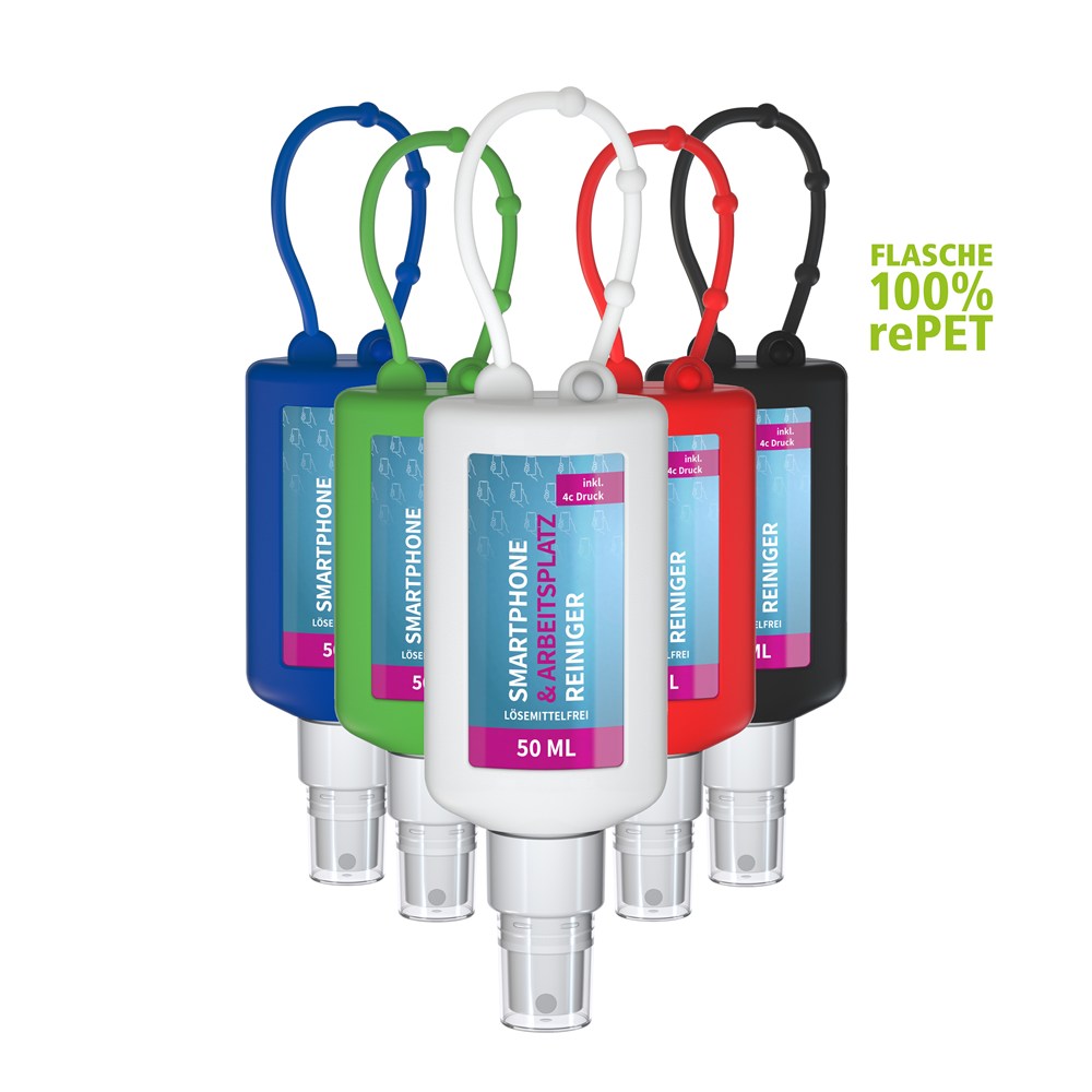 Smartphone & Arbeitsplatz-Reiniger, 50 ml Bumper rot, Body Label (R-PET)