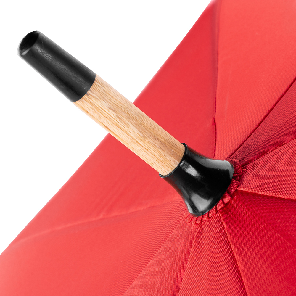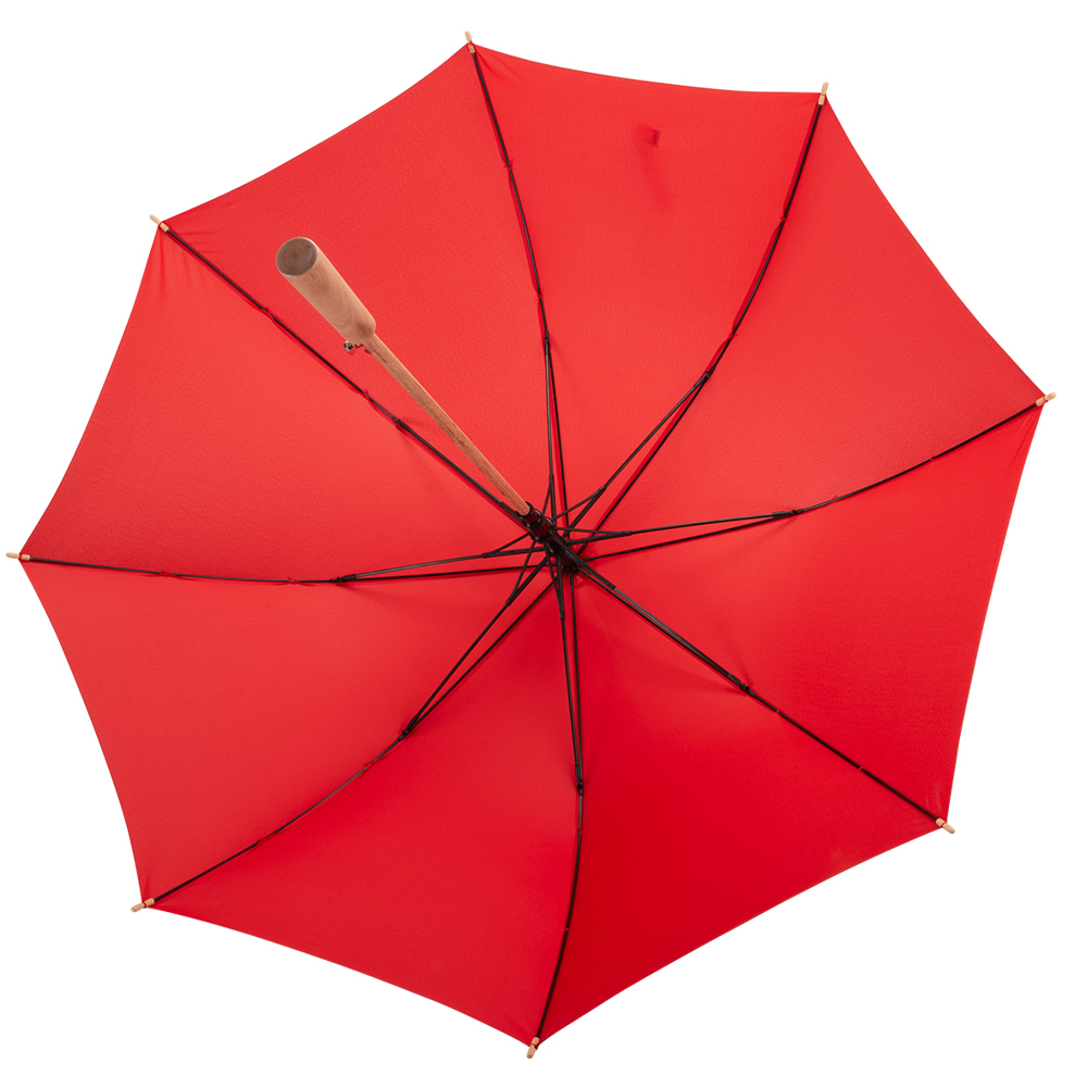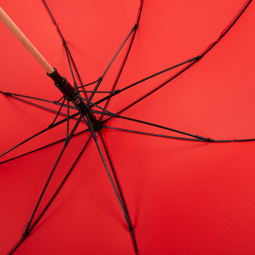 Dieser Regenschirm hat einen Durchmesser von ca. 117 cm und bietet zuverlässigen Schutz. Mit einer geschlossenen Länge von ca. 93 cm lässt er sich dank des Automatikmechanismus schnell öffnen. Der Schirm verfügt über 8 stabile Segmente, schwarze 68 cm lange Fiberglasspeichen und einen robusten 14 mm Holzschaft. Der gerade Holzgriff sorgt für einen angenehmen Halt, während die Holztips und -spitze für eine natürliche, elegante Optik sorgen. Zudem ist der Schirm mit einer Windproof-Funktion ausgestattet, um auch bei stürmischem Wetter standzuhalten.