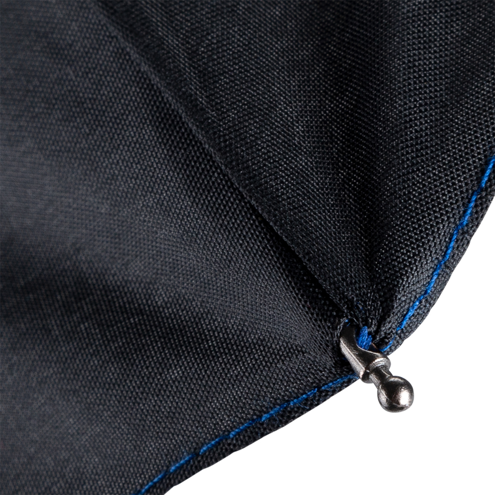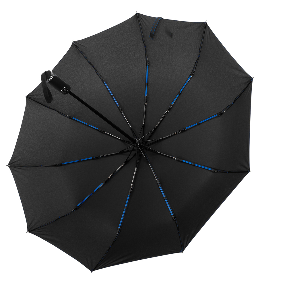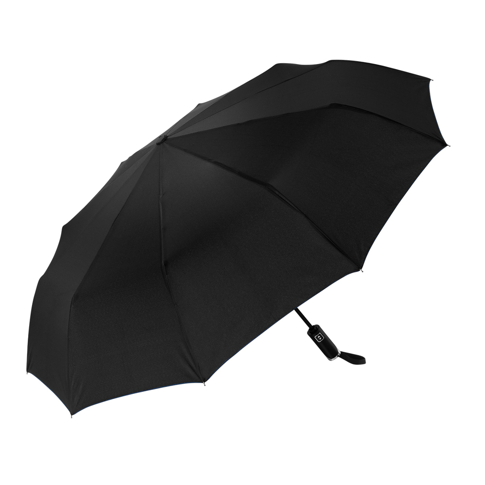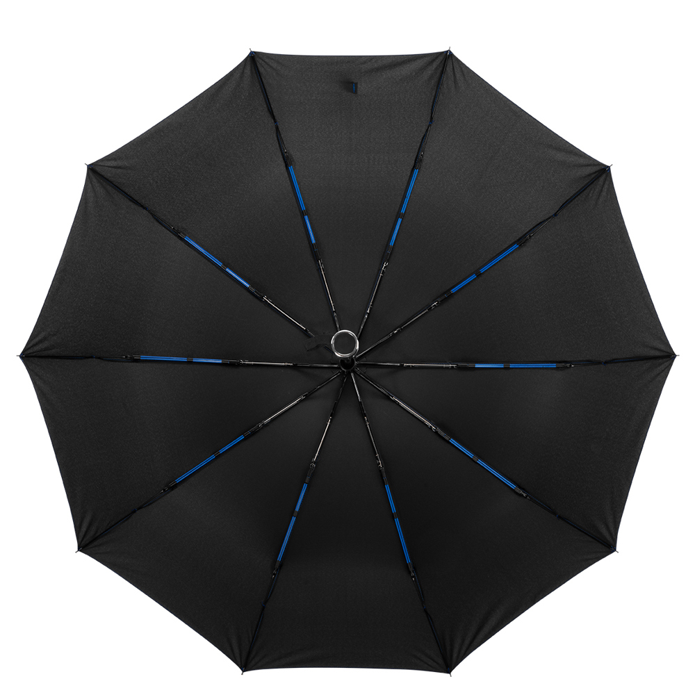 Dieser Taschenschirm hat eine Bespannung aus 190T rPET Pongee in Schwarz mit farbigen Nähten und einen Durchmesser von ca. 105 cm. Mit einer geschlossenen Länge von etwa 31 cm lässt sich der Schirm dank der Doppelautomatik schnell öffnen. Er verfügt über 10 Segmente und 58 cm lange Fiberglasspeichen, wobei das Mittelteil farbig abgesetzt ist. Der dreiteilige Metallschaft sorgt für Stabilität und Robustheit. Ausgestattet mit einer Ultimate-Windproof-Funktion bietet der Schirm maximalen Schutz bei starken Winden. Der Kunststoffgriff mit Trageschlaufe sorgt für eine bequeme Handhabung und einfachen Transport.