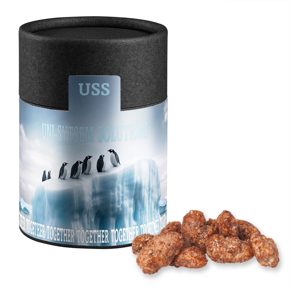 Feuergebrannte Mandeln, ca. 80g, Kraftpapierdose Midi schwarz