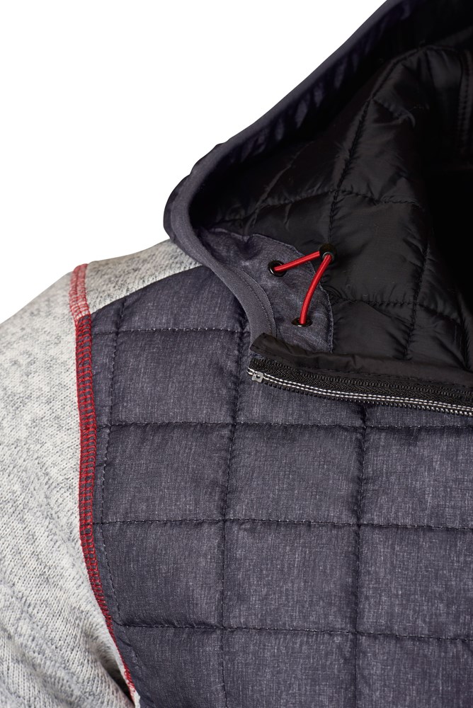 Weiches, wärmendes, pflegeleichtes Material in Melange-Optik Vorder-, Rückenteil und Kapuze in gestepptem Karodesign Kontrastfarbige Flatlocknähte am Ärmel Kapuze mit innenliegender Weitenregulierung Durchgehend hinterlegter Reißverschluss 2 seitliche Taschen mit Reißverschluss, 2 Innentaschen JN771: taillierter Schnitt 1/2 Oberweite: 53 cm Länge ab Schulter: 68 cm Ärmel Länge: 67 cm OEKO-TEX® Standard 100 (15.0.70467) Kapuze