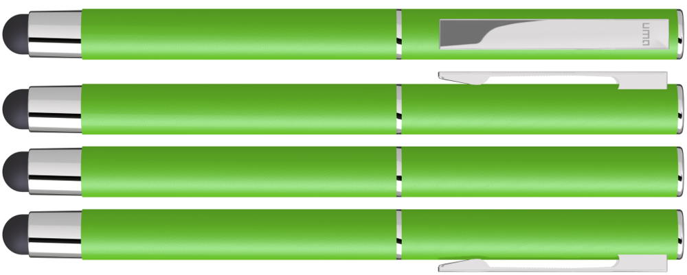 Metall-Rollerball mit mattem Gehäuse. Metallclip und Zierring silber glänzend, Griffzone schwarz. Gummiertes Schaftende für die Touchscreensteuerung.