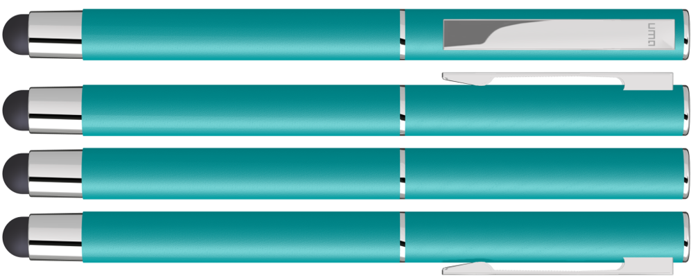 Metall-Rollerball mit mattem Gehäuse. Metallclip und Zierring silber glänzend, Griffzone schwarz. Gummiertes Schaftende für die Touchscreensteuerung.
