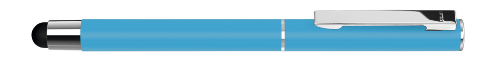 Metall-Rollerball mit mattem Gehäuse. Metallclip und Zierring silber glänzend, Griffzone schwarz. Gummiertes Schaftende für die Touchscreensteuerung.