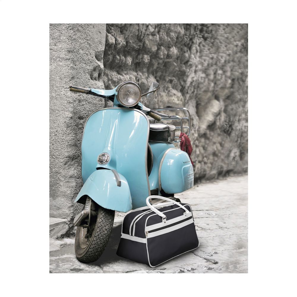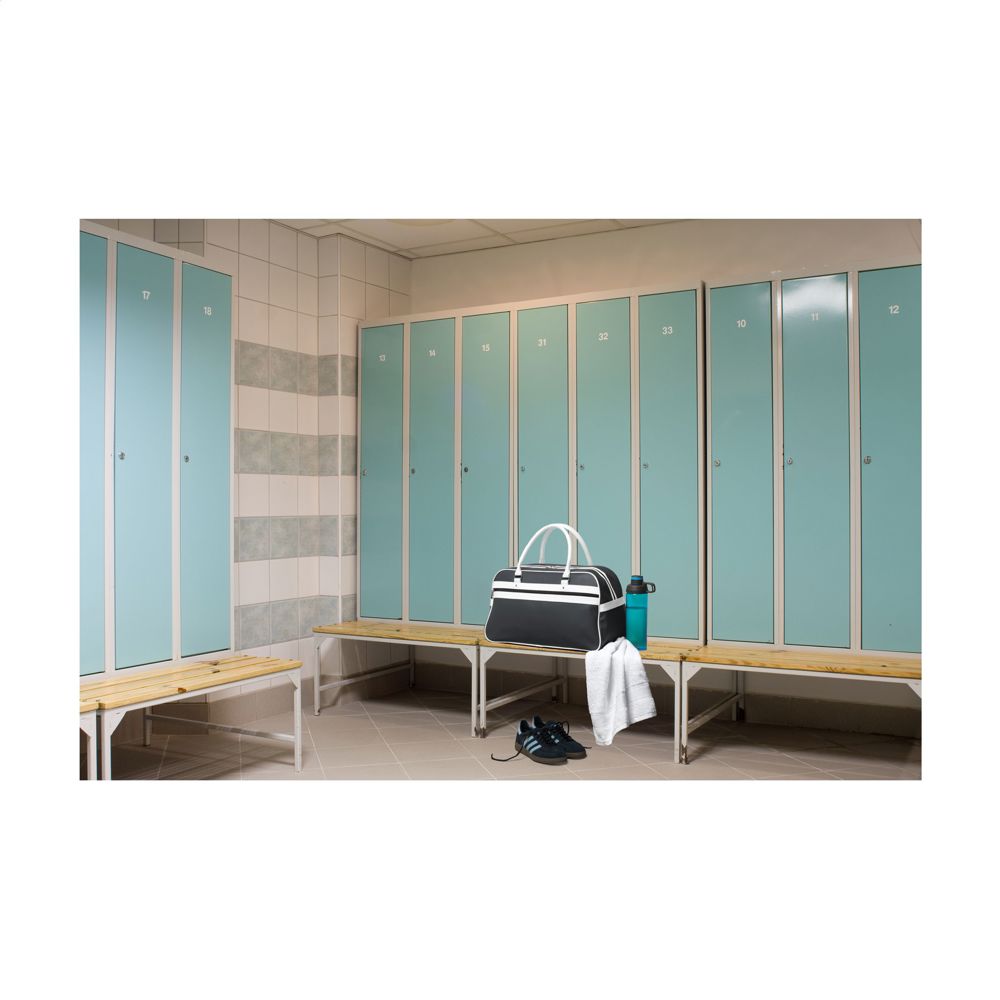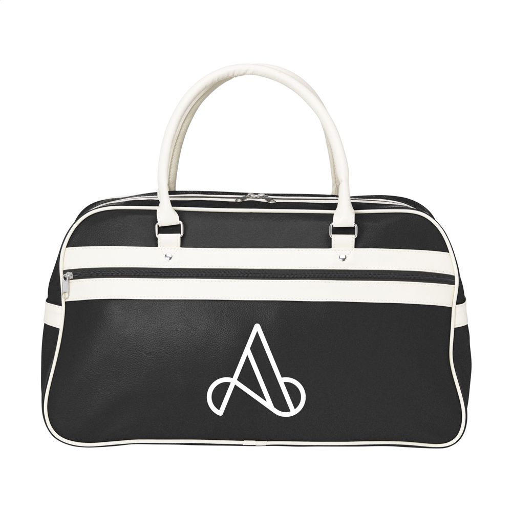 PVC/PU Sporttasche im 70er Jahre-Look mit gefütterter Innenseite, Hauptfach und Reißverschlussfach, 2 stabilen Handgriffen, Einlegeboden und Schutznoppen. Stilvoll verarbeitet mit hochwertigen Materialien, die eine extra lange Lebensdauer garantieren. Fassungsvermögen ca. 21,5 Liter.