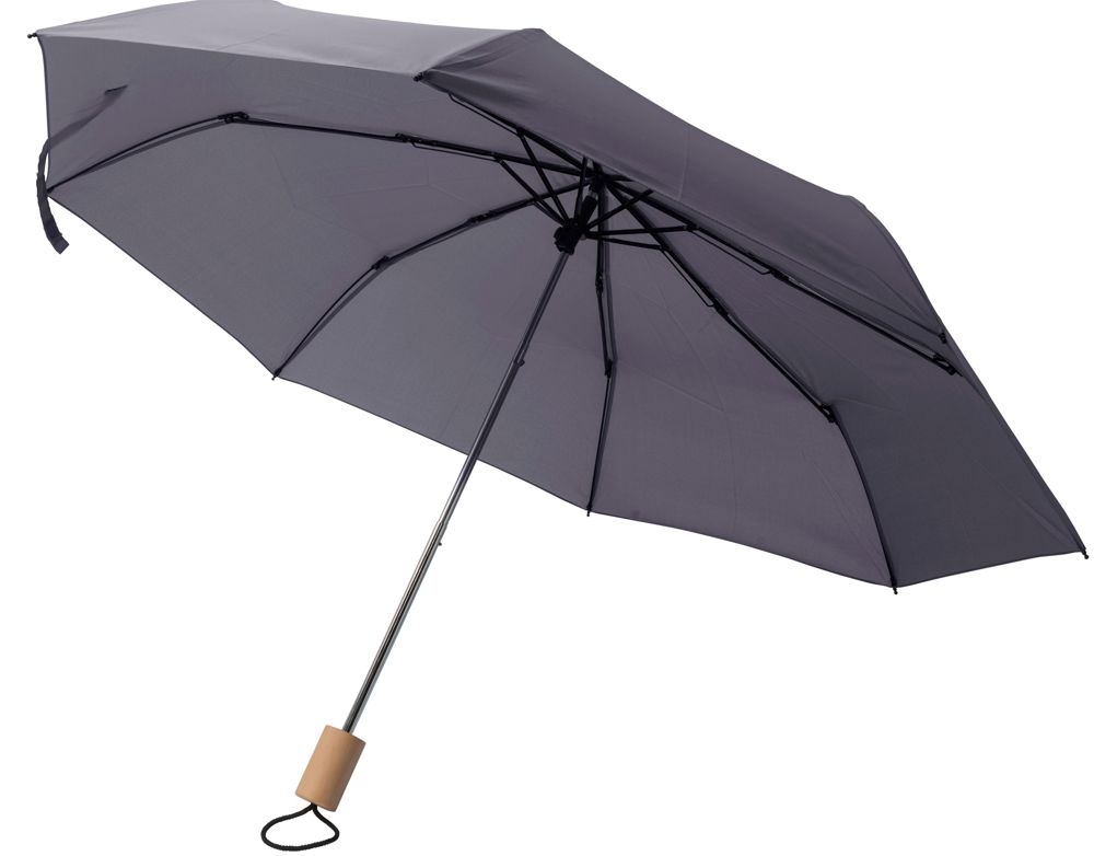 rPET faltbarer Schirm 190T mit acht Paneelen und Eichenholzgriff. Inklusive Tasche.