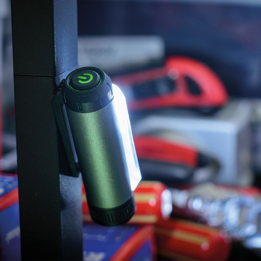 Das Combi-Worklight vereint gleich zwei praktische Features: Als Arbeitsleuchte und als leichte Stirnlampe, sodass Ihre Hände immer frei bleiben. Sehr praktisch durch den drehbaren Clip und einen Magnet. Mit robustem, spritzwassergeschütztem Metallgehäuse, leistungsstarkem Akku und Typ-C Anschluss sowie acht verschiedenen LED-Modi: 4 x weißes Licht, grün, blau, rot, rot-blinkend.