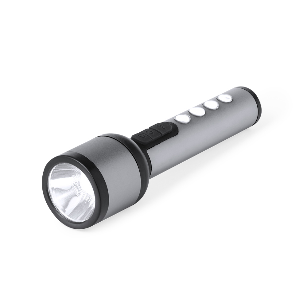 Leistungsstarke Taschenlampe aus Aluminium mit edlem Design in Metallic-Grau mit schwarzen Akzenten. Es verfügt über 1 LED an der Vorderseite für Punktbeleuchtung und 4 COB-Leuchten im Griff für Flutlicht. Es verfügt über 3 Beleuchtungsmodi: Dauerlicht, langsames Blinken und schnelles Blinken, um sich an unterschiedliche Bedürfnisse anzupassen. Diese Taschenlampe ist über einen 1200-mAh-Akku wiederaufladbar, das Ladekabel ist im Lieferumfang enthalten. Einzeln präsentiert in einer Kraft-Design-Box.