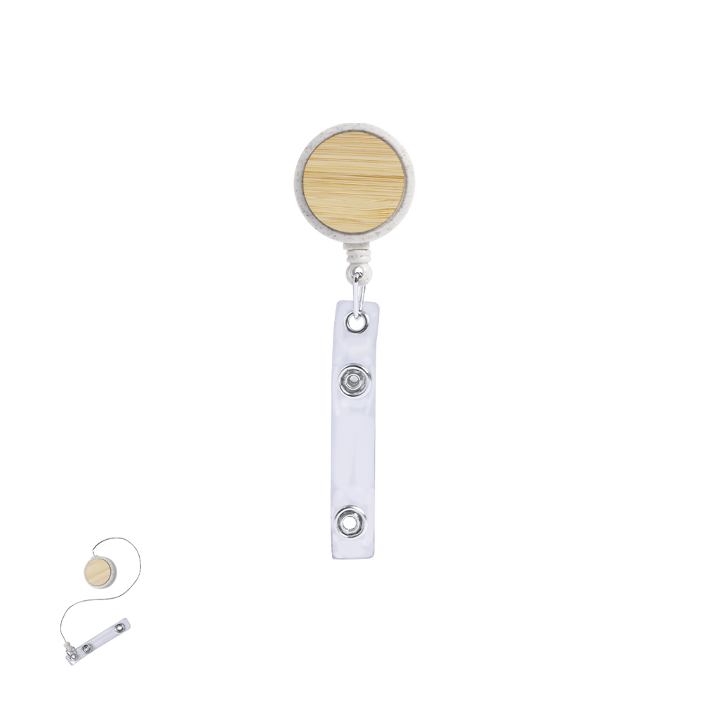Ausziehbarer Ausweishalter aus Bambus und Weizenstroh. Verschlussband mit Knopfverschluss und ausziehbarem Mechanismus bis 70 cm. Inklusive rückseitigem Metallclip zur Befestigung. Mit großer Branding-Fläche auf dem Bambus-Mittelteil. Einzeln in einer recycelten Tasche präsentiert. Materialien wie Bambus fördern die Verwendung natürlicher Rohstoffe und reduzieren so den Schadstoffausstoß. Darüber hinaus stammt Bambus aus einer äußerst widerstandsfähigen und vielseitigen Pflanze mit schnellem Wachstum und Regeneration, was ihn zu einer hervorragenden Alternative zu herkömmlichem Holz macht.