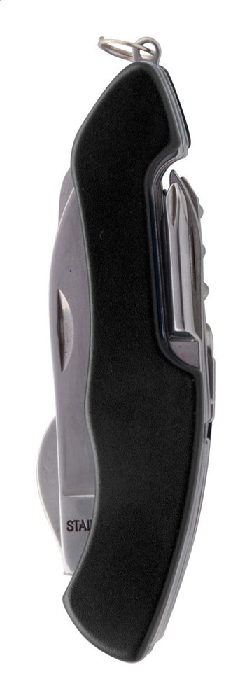 Taschenmesser mit 12 Funktionen. Material: Edelstahl, Griffe aus Aluminium.