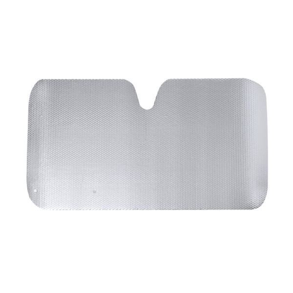 Autosonnenschutz aus Aluminium mit beidseitiger Blase und den Maßen 130x70 cm. Silberne Metallic-Oberfläche, mit originellem Design ohne Paspel. Präsentiert in einer Tasche, ungefaltet um den Druck zu erleichtern.