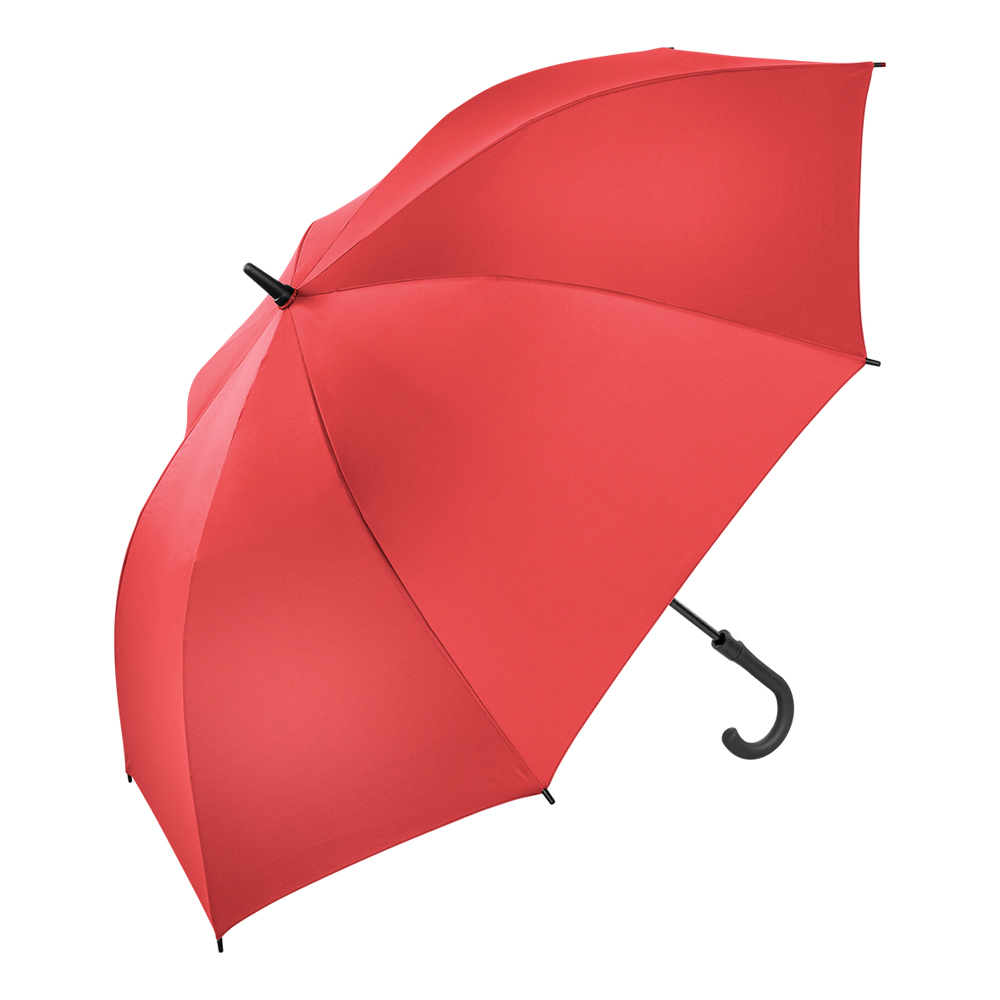 Dieser Regenschirm aus 190T RPET-Pongee hat einen Durchmesser von ca. 130 cm. Mit einer geschlossenen Länge von ca. 101 cm lässt er sich dank des Automatikmechanismus schnell öffnen. Der Schirm verfügt über 8 stabile Segmente, schwarze 65 cm lange Fiberglasspeichen und einen robusten 14 mm Fiberglasschaft. Der gebogene Rundgriff mit PU-Beschichtung in Schwarz sorgt für einen komfortablen Halt.