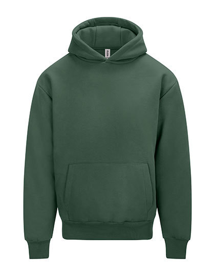 Ringgesponnene Baumwolle / recycelter Polyester | Oversize fit | Schweres Material | Doppellagige Kapuze mit drei Segmenten | Kängurutasche mit Handy-Innentasche | Keine Kordelzüge | Gerippte Ärmelabschlüsse und Saum | Gebürstetes Innenvlies | 100 % Baumwoll-Obermaterial | Abreißetikett