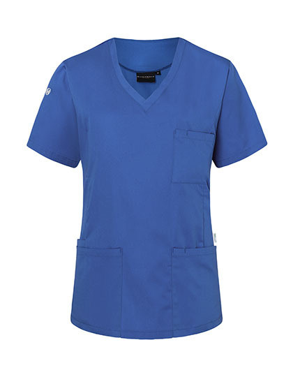 Köpergewebe, 150 g/m² | Waschecht, pflegeleicht, nachhaltig | Mit V-Ausschnitt und kurzen Ärmeln | Polyesteranteil aus recyceltem Plastik | Besonders leichter Stoff für ein angenehmes Tragegefühl im Berufsalltag | Waschbarkeit bei 95°C | Leicht tailliert geschnitten | 2 aufgesetzte Seitentaschen mit 1 verdeckter Innentasche | 1 Schlaufe in der Seitentasche zur Befestigung einer Schlüsselkette | 1 aufgesetzte Brusttasche links mit Stiftfach | Grüner Knopf zertifiziert, www.g-k.eu/karlowsky