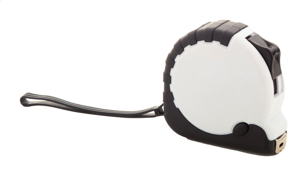 Maßband aus recyceltem ABS Kunststoff mit Stopper, Metallklip und Handschlaufe. Länge: 3 m.