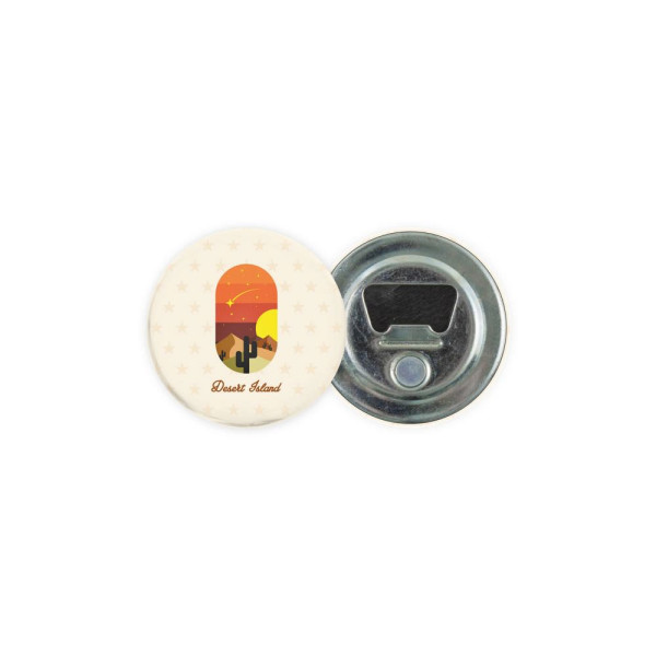 Der 56 mm Button ist die beliebteste Variante und die Rückseite dieses Modells ist mit einem Flaschenöffner versehen. Außerdem ist der Flaschenöffner mit einem Magneten ausgestattet, der eine einfache Befestigung an allen Metalloberflächen ermöglicht. Das Blechmaterial in amerikanischer Qualität und der Vollfarbdruck auf FSC-Papier sind die Garantie für ein perfektes Werbemittel zur Übermittlung von Botschaften!