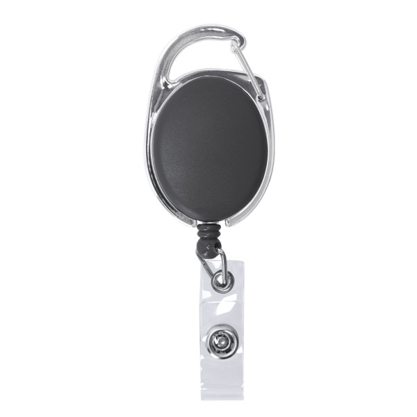 Ausziehbarer ID-Halter in schlichtem Design, mit Knopfverschlusszubehör für den Ausweis und einem Ausziehmechanismus von bis zu 75 cm Länge. Mit Metallkarabiner und einer breiten Druckfläche.